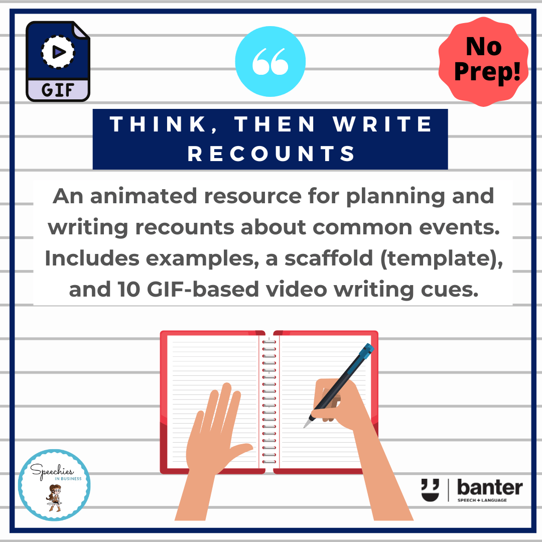 Help your students to give recounts by showing, not telling: recount models, scaffolds and animated GIFs to build engagement, oral recount and writing skills (click for a demo)